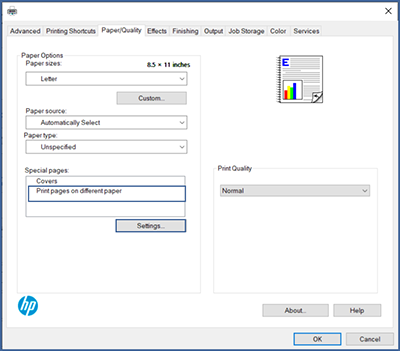 HP LaserJet, HP OfficeJet Enterprise, HP PageWide Enterprise - Print the first and last page on different paper (Windows)