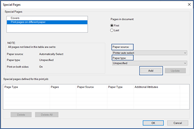 Select the applicable options from the Paper source and Paper type drop-down lists, and then click Add.
